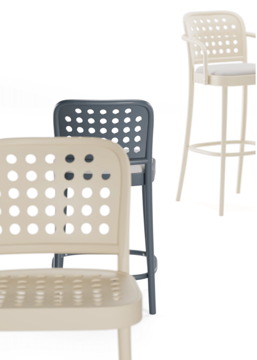The 822 Bentwood Barstool with Back by Ton is a contemporary evolution of classic bentwood craftsmanship, designed in collaboration with Studio Claesson Koivisto Rune. Featuring a visually striking interplay of curves and clean geometry, the stool combines a steam-bent beechwood frame with a molded plywood seat and backrest, resulting in a piece that feels both timeless and modern.