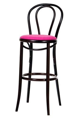 Materials: Bentwood stool. Counter or bar height. Frame in solid natural beechwood or beechwood with stain. Seat upholstered with fabric or leather.