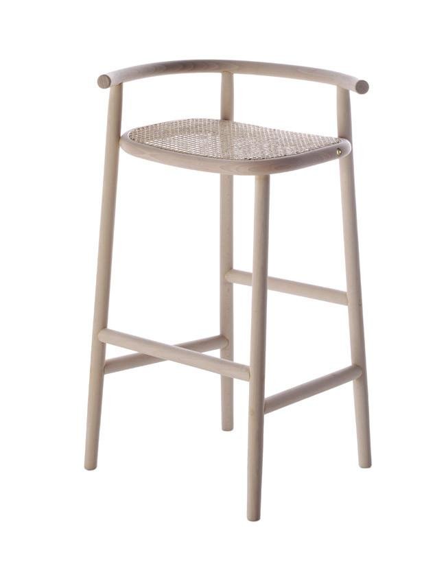 Materials: Bentwood stool with natural, stained, or lacquered finish Woven cane or plywood seat.