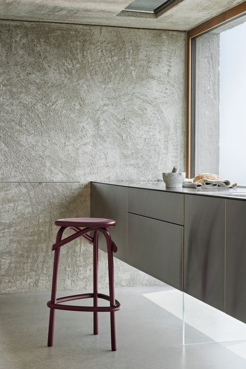 Materials: Bentwood stool with natural, stain or lacquered finish. Plywood seat. Low or high height.