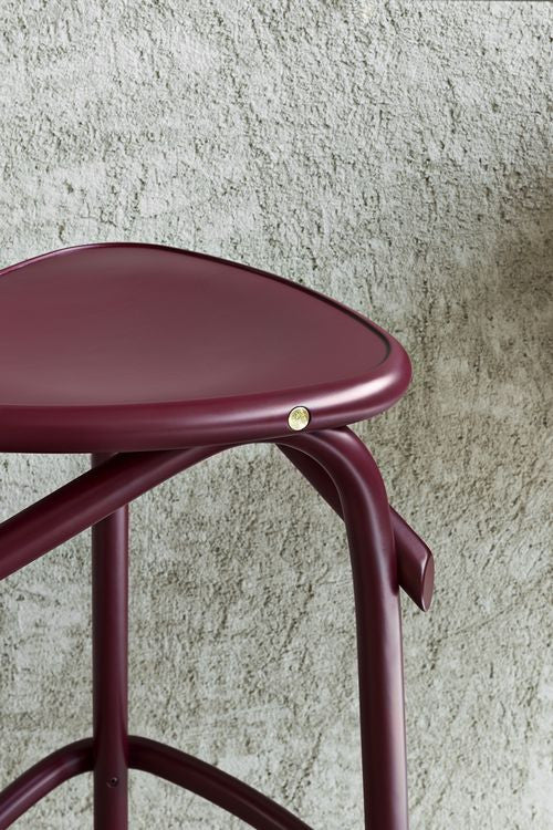Italian designer Martino Gamper suggests a new interpretation of the concept of informal seating with the bentwood stool Trio. The tripod structure plays with the GTV brand icons, proposing bentwood elements of different angles, recalling the geometry of the triangle. Three sections of the offset semicircle define the linking support of legs, which holds a triangular seat with rounded profiles.